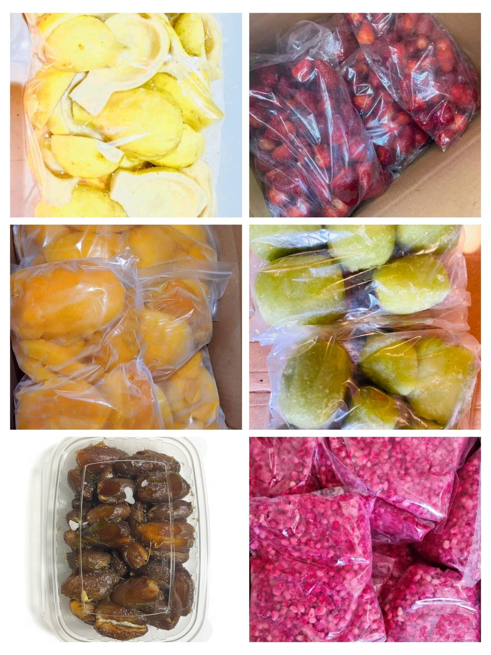 – *جميع الفواكه مجمدة ومخلية جاهزة للاستخدام مباشرة