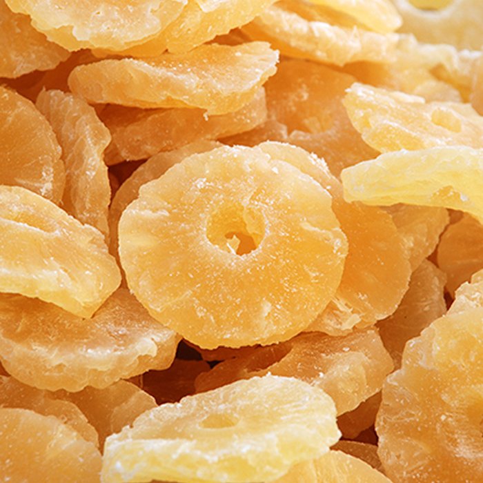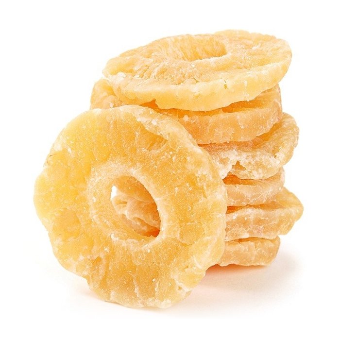 شرائح أناناس مجففة بطعم استوائي حلو ومنعش، خالية من السكر المضاف، غنية بإنزيم البروميلين اللي بيساعد على الهضم. مثالي للدايت ولسناك خفيف وصحي.
