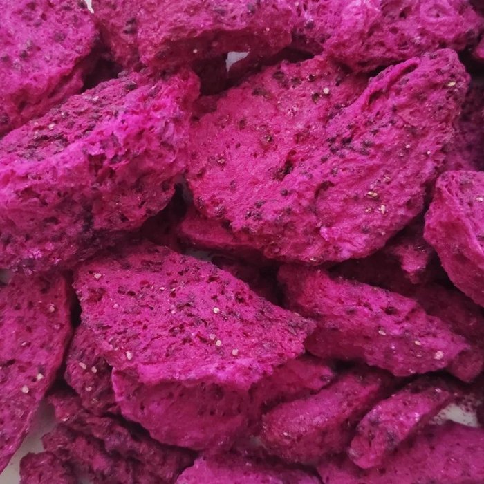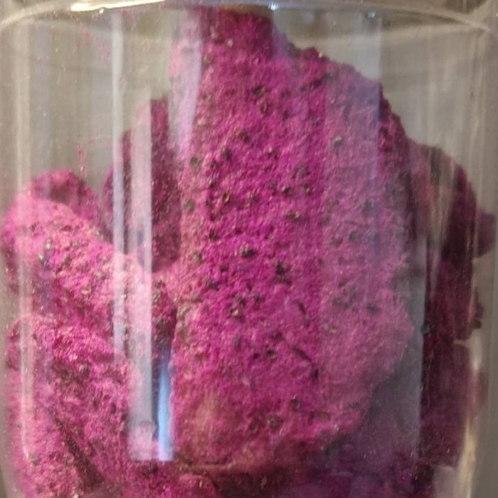 دراجون فروت مجفف (فاكهة التنين)، شكلها مميز وطعمها حلو خفيف، غنية بمضادات الأكسدة، الألياف، وفيتامين C. مثالية لسناك أنيق وصحي.